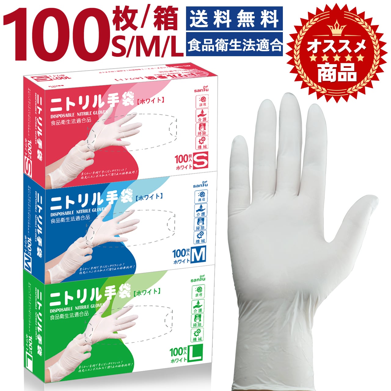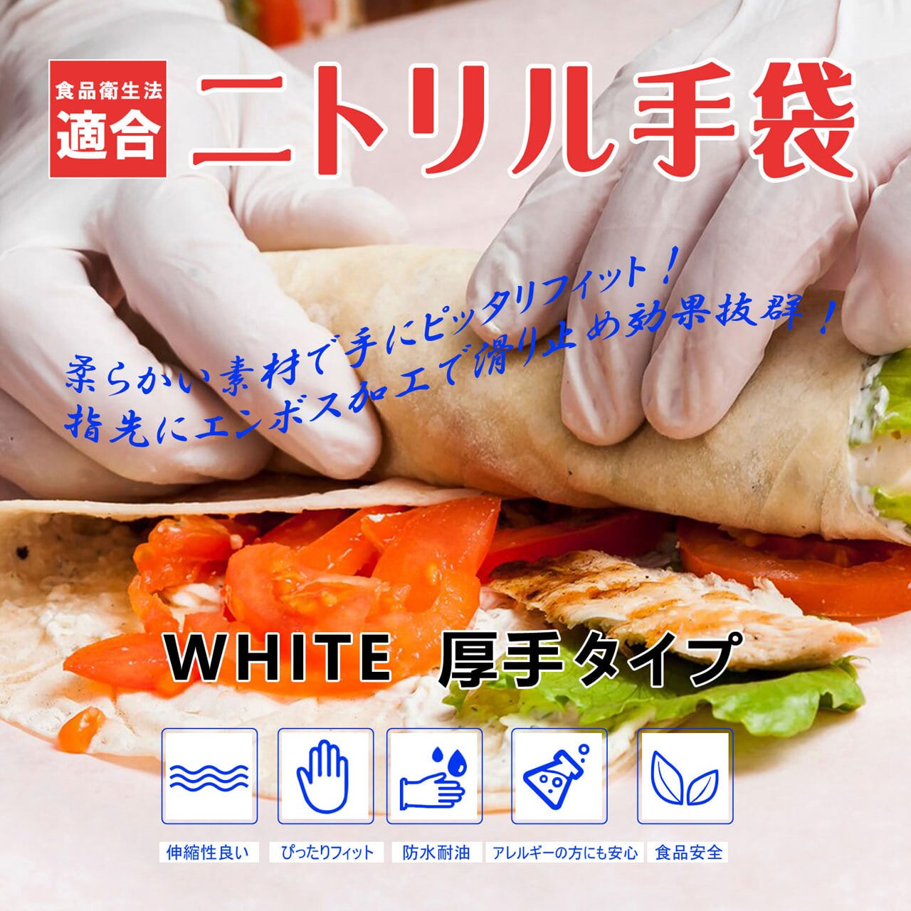 【SANYU】ニトリル手袋 ニトリルグローブ ホワイト 使い捨て手袋 食品衛生法適合 白色 0.08mm 厚手 粉なし【1箱(100枚)】【10箱 (1000枚)】/ Nitrile Gloves WHITE