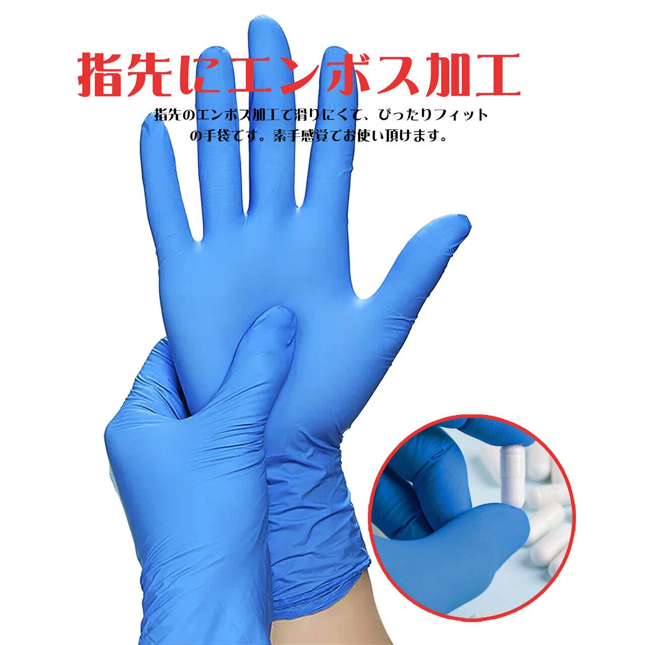 このニトリル手袋はシックな青色で、サイズはS、M、Lの3種類をご用意しております。手の大きさに応じて選んでいただけるため、快適な着用感が得られます。